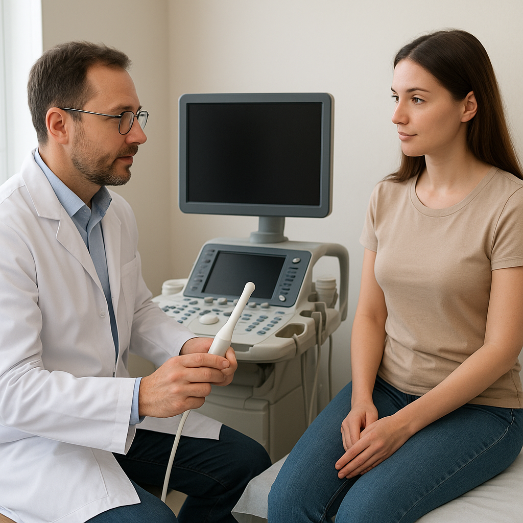 - Pusty lub lekko wypełniony pęcherz moczowy – zwykle przed USG endowaginalnym zaleca się opróżnienie pęcherza, co zwiększa wygodę i umożliwia lepszy kontakt sondy z błoną śluzową pochwy.